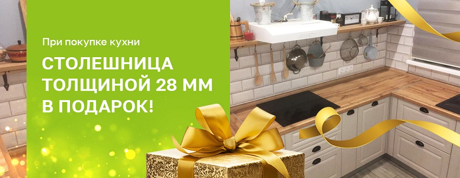 При покупке кухни столешница производства Россия толщиной 28 мм в подарок!