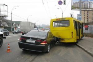 Парень на BMW с номерами 0666 протаранил маршрутку в Киеве