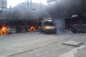 В Днепропетровске сгорели 18 маршруток и трехэтажный дом