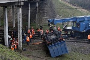 В Москве грузовик, упав с эстакады, перекрыл железную дорогу