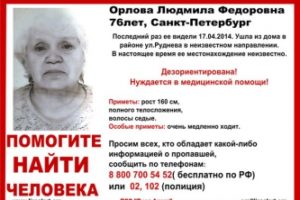 Пропала Орлова Людмила Федоровна,76 лет, Санкт-Петербург
