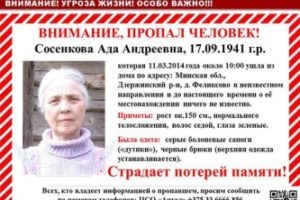 Пропала Сосенкова Ада Андреевна, Минск