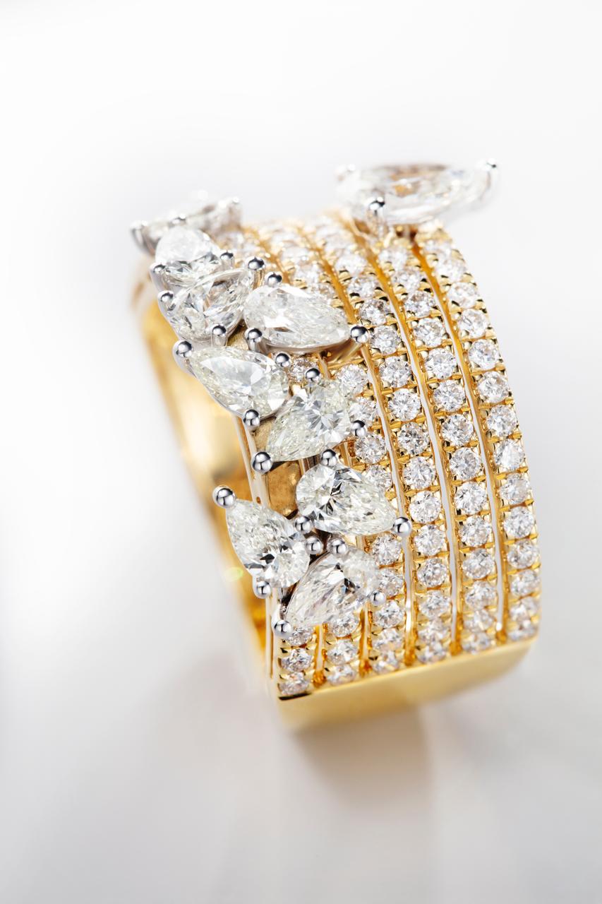 На вечере были представлены несколько направлений. Основное внимание привлекла коллекция с природными бриллиантами, в которой комбинируются разнообразные материалы и редкие камни. Среди ключевых моделей – украшения с якутскими бриллиантами в комбинированном золоте, изделия с природным цаворитом, кольца с танзанитом, а также россыпь крупных бриллиантов, создающих эффект масштабного ювелирного ансамбля.