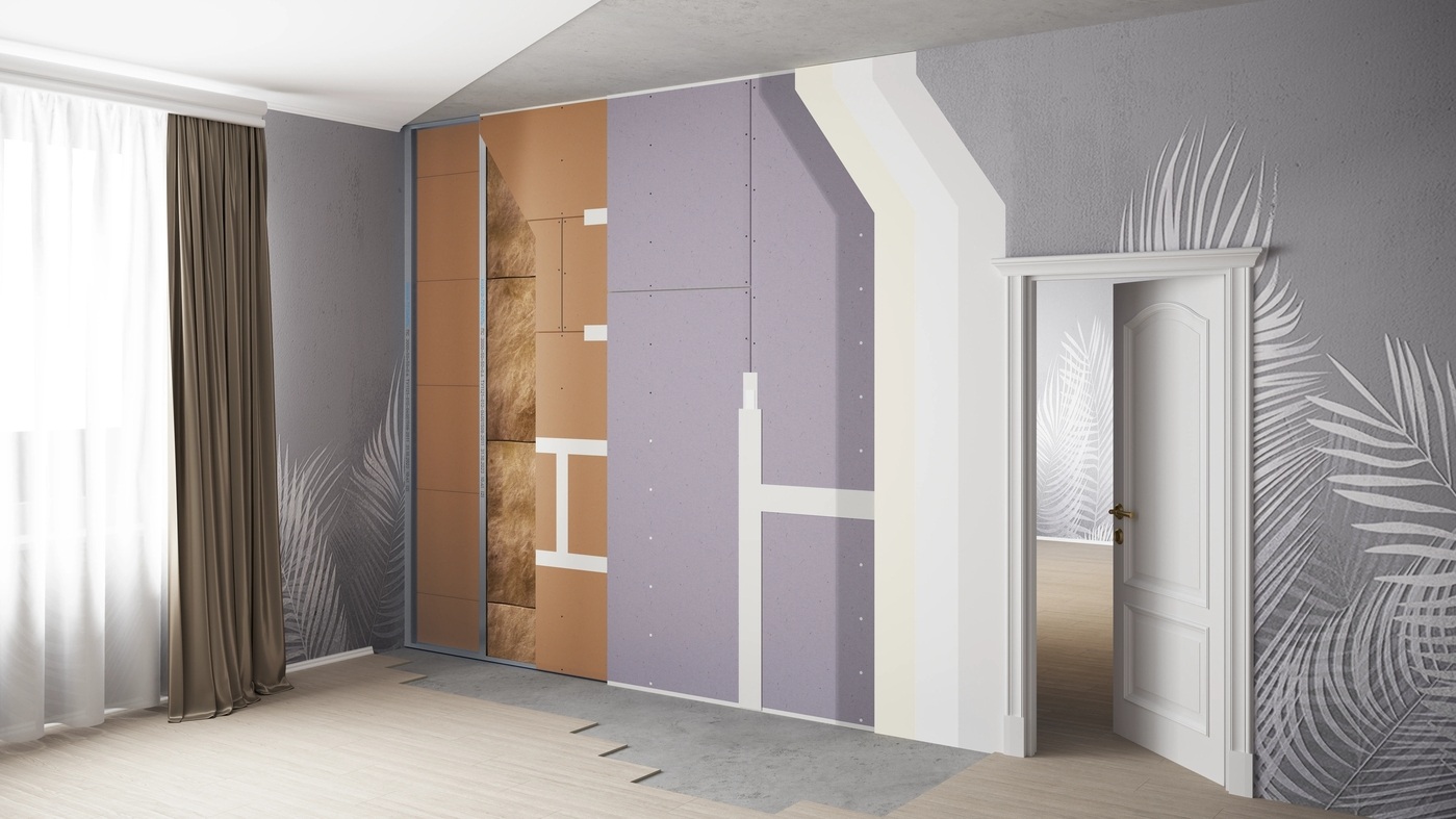 “В системе хорошей звукоизоляции удается добиться за счет двух процессов сразу: рассеивания энергии звука в волокнистом материале (каменной вате) и ослаблении волны в твердом материале (гипсокартоне). Сначала звуковая волна преодолевает массивный элемент – стену или железобетонное перекрытие, потом попадает в минвату, где рассеивается, попеременно проходя через волокна и воздушные прослойки, а затем – в гипсокартон, еще один массивный элемент. То есть получается конструкция «масса-пружина-масса». Когда только масса, звукоизоляция не работает. Не стоит применять звукоизоляцию только на стены. Также потолок — это очень важно. Пол, потому что, если мы сделаем стены и потолок, мы должны решать вопрос бегающих соседей сверху. Поэтому у компании КНАУФ есть система плавающих сборных полов. Не нужно потом делать какие-то подкладки. Это уровень пятизвездочного отеля”, — поделился Юрий Ковченко.