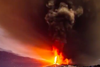Самый высокий вулкан Европы – Этна, находящийся на Сицилии в Италии, прошлой ночью изверг огромный столб дыма и пламени с электрическими разрядами.